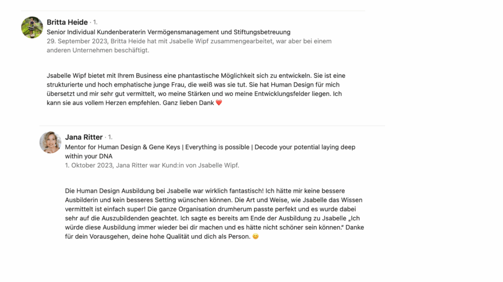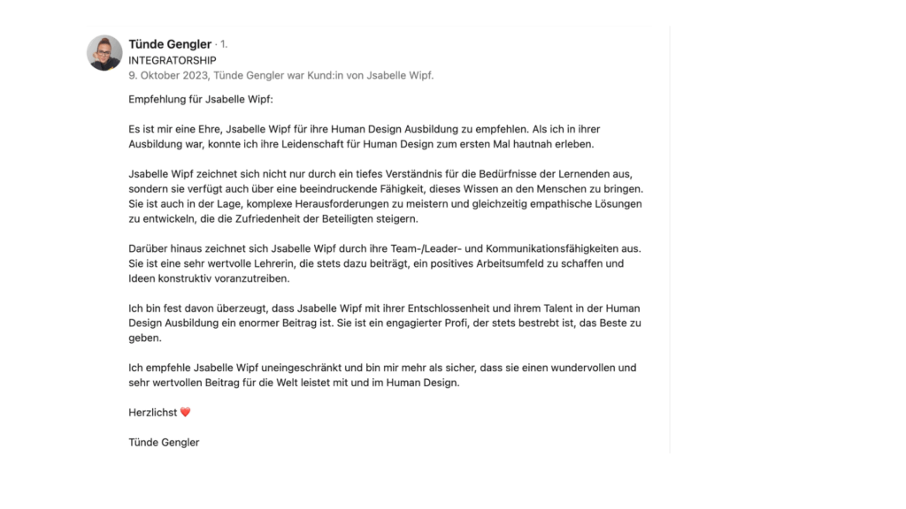 In meiner Ausbildung zeige ich dir, wie du Human Design: seriös und ethisch anwendest sicher interpretierst, auch in komplexen beruflichen Kontexten und mit echtem Tiefgang Menschen begleitest, entwickelst oder einstellst